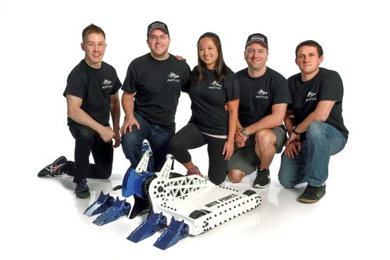 Robot: Bite Force Type: Bar spinner (vertical) Team: Aptyx Designs Paul Ventimiglia (Captain), Teena Liu (Project Manager), Cory McBride (Fabricator), Jeremiah Jinno (Software Engineer), Travis Covington, Colin Wilson Hometown: Mountain View, CA Sponsors: Worcester Polytechnic Institute (WPI), VEX Robotics, Magmotor Technologies, Big Blue Saw, SOLIDWORKS Website: www.aptyxdesigns.com facebook.com/AptyxDesigns Builder: Paul Ventimiglia Job: Robotic Engineer at…