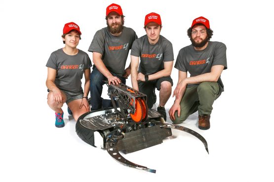 Robot: Road Rash Type: Angle Grinder/Grappler Team: DANGER 4 Frederick Moore (Builder, CAD, Main Driver), Dane Kouttron (Builder/Electrical Engineer), Julian Merrick (Electrical Engineer), Ciaran O’Neill (Assembly/Manufacturing), Cheetiri Smith (Engineer), Alex Hattori, Jared DiCarlo Hometown: Boston, MA Sponsors: Vicor, Progressive RC, Advanced Motion Controls, H2W Technologies Website: DANGER 4 facebook.com/danger4season2 Builders: Frederick Moore and Dane Kouttron…
