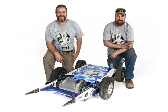Robot: Yeti Type: Drum spinner Team: Team Yeti Gregory Gibson, David Oliver, Brandon Kruse, Charlie Gibson Hometown: Wasilla, AK Sponsors: eTrac Inc. Website: facebook.com/Yeti-Battlebot Builder: Gregory Gibson Job: Hydrographic Surveyor Years competing: 14 years Favorite tool: Really Big Hammer Favorite robot: Mechadon Interesting fact: I enjoy spearfishing in Alaska? Sounds more like a Tinder profile. Stat…